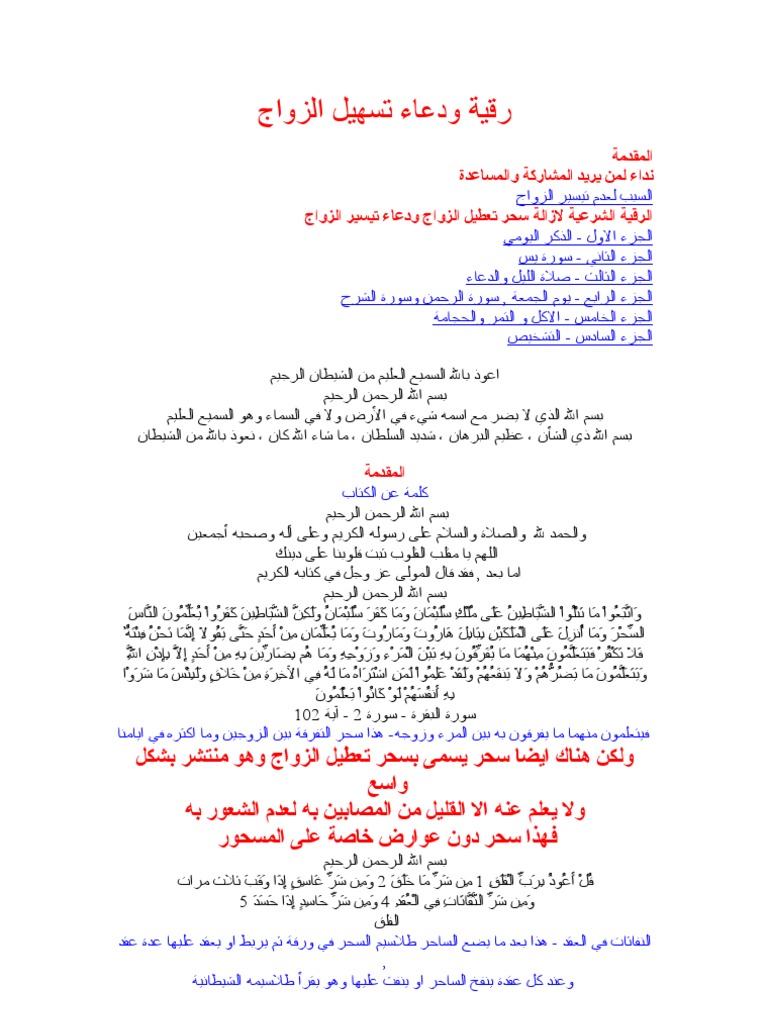 لمن يريد الرقيه الشرعية مكتوبه نصية منتدى فتكات