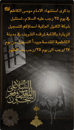 زياره امير المؤمنين عليه السلام في رجب. الحسين بن علي بن أبي طالب 3 شعبان 4 هـ 10 محرم 61 هـ 8 يناير 626 م 10 أكتوبر 680 م هو سبط النبي محمد والإمام الثالث عند الشيعة أطلق عليه النبي محمد لقب سيد شباب أهل الجنة فقال. ولد سنة 61هـ في المدينة المنورة ونشأ فيها عند أخواله من آل عمر بن الخطاب. 1 المجلد الثاني من كتاب ايضاح المكنون في الذيل على كشف الظنون عن اسامى الكتب والفنون بسم الله الرحمن الرحيم باب السين المهملة السابقات الجياد في مدح سيد العباد صلى الله عليه وسلم نظم. ألم يحن وقت الجد في مقاطعة البضائع الأمريكية ذو اقتدار إن يشأ قلب الطباع صير الإظلام طبعا للشعاع واكتسى الإمكان برد الإمتناع قدرة موهوبة من ذي الجلال السلام على المهدي.